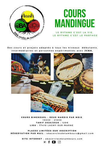 Initiation au rythme et chant de l'Afrique de l'Ouest. Découverte du plaisir de jouer ensemble. Polyrythmie, travail technique digital. Découverte d'instruments différents (Djembe, Dunduns, Balafon, Sanza, Udu ...). Connaissance des rituels.